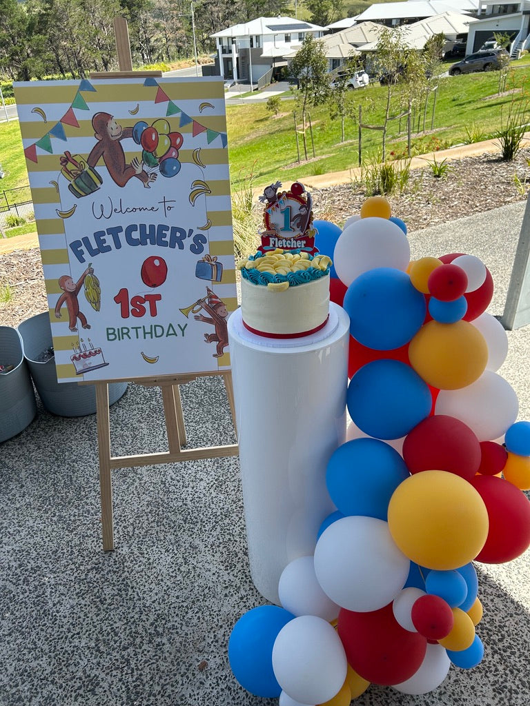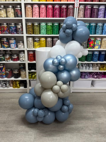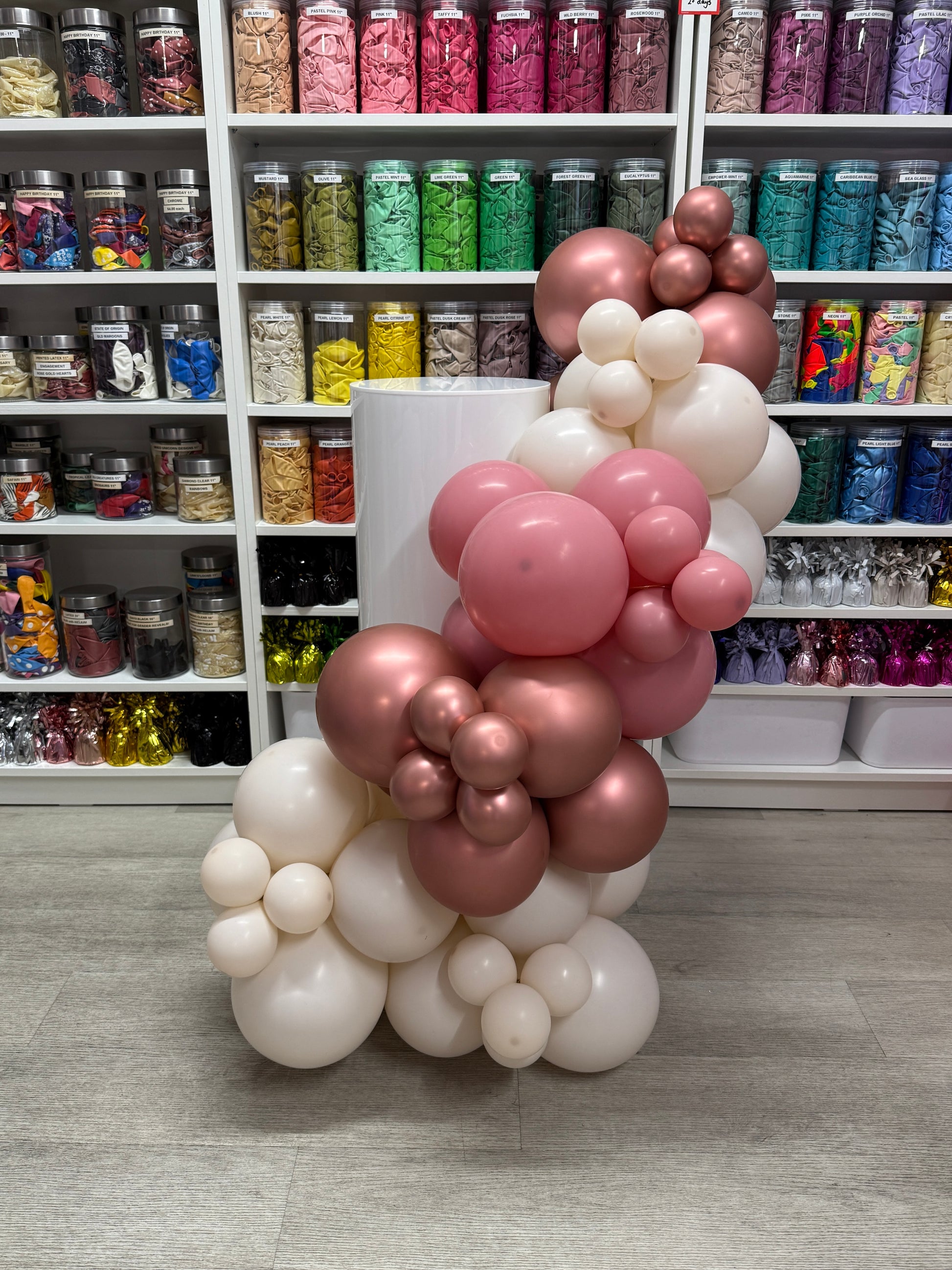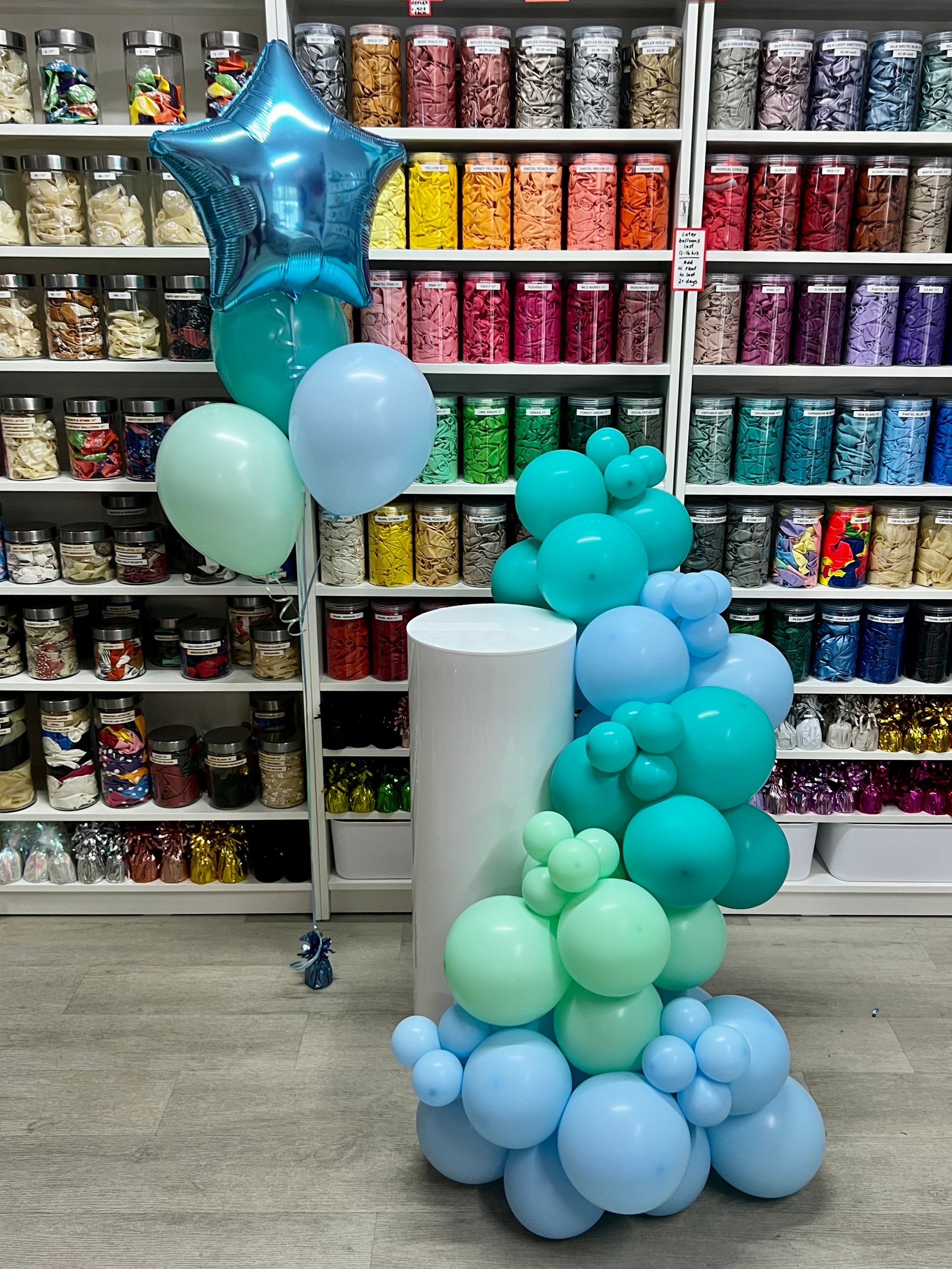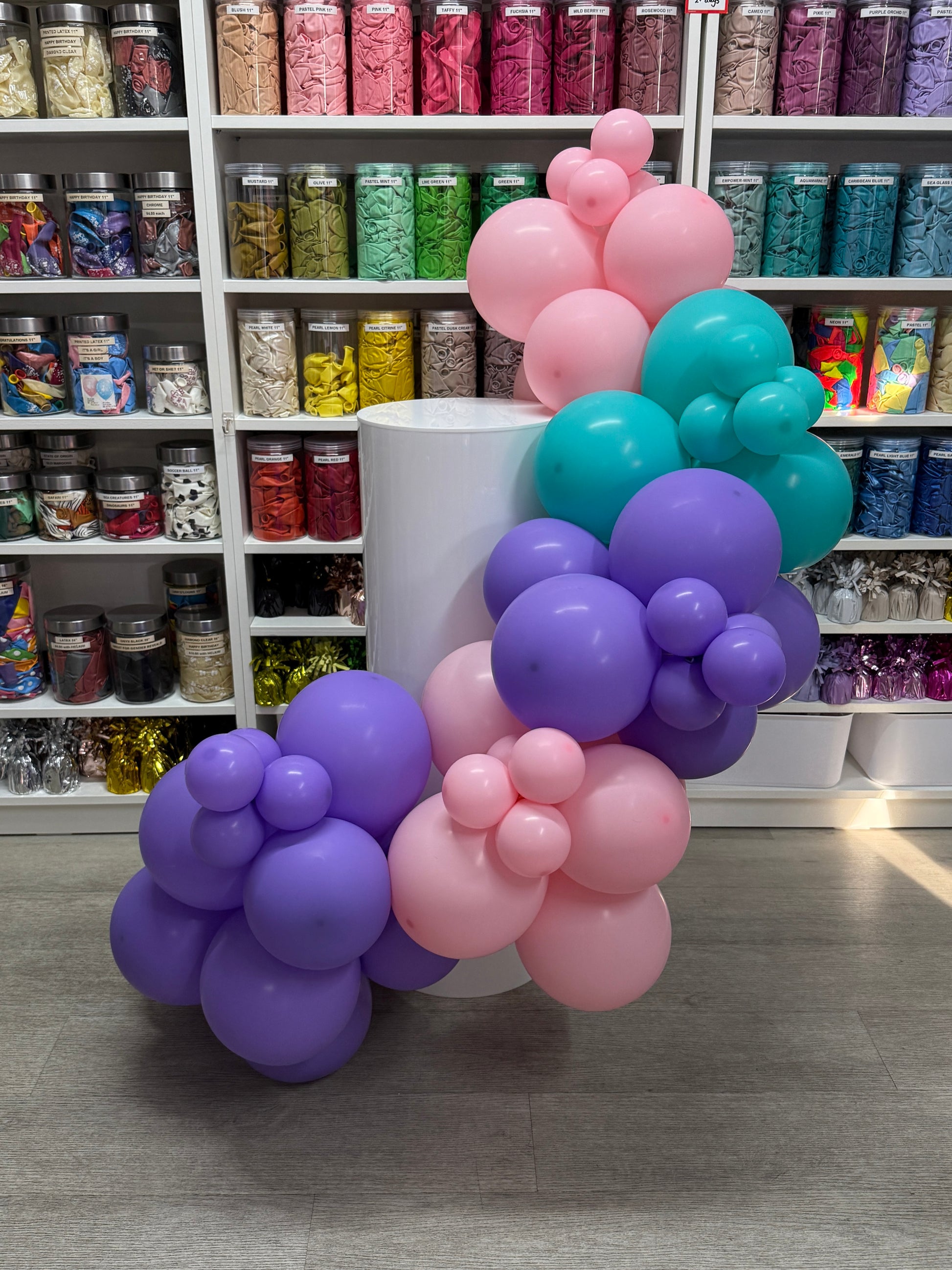 Hire our cake plinth on its own or add a beautiful balloon garland to create a feature for your cake to stand on!