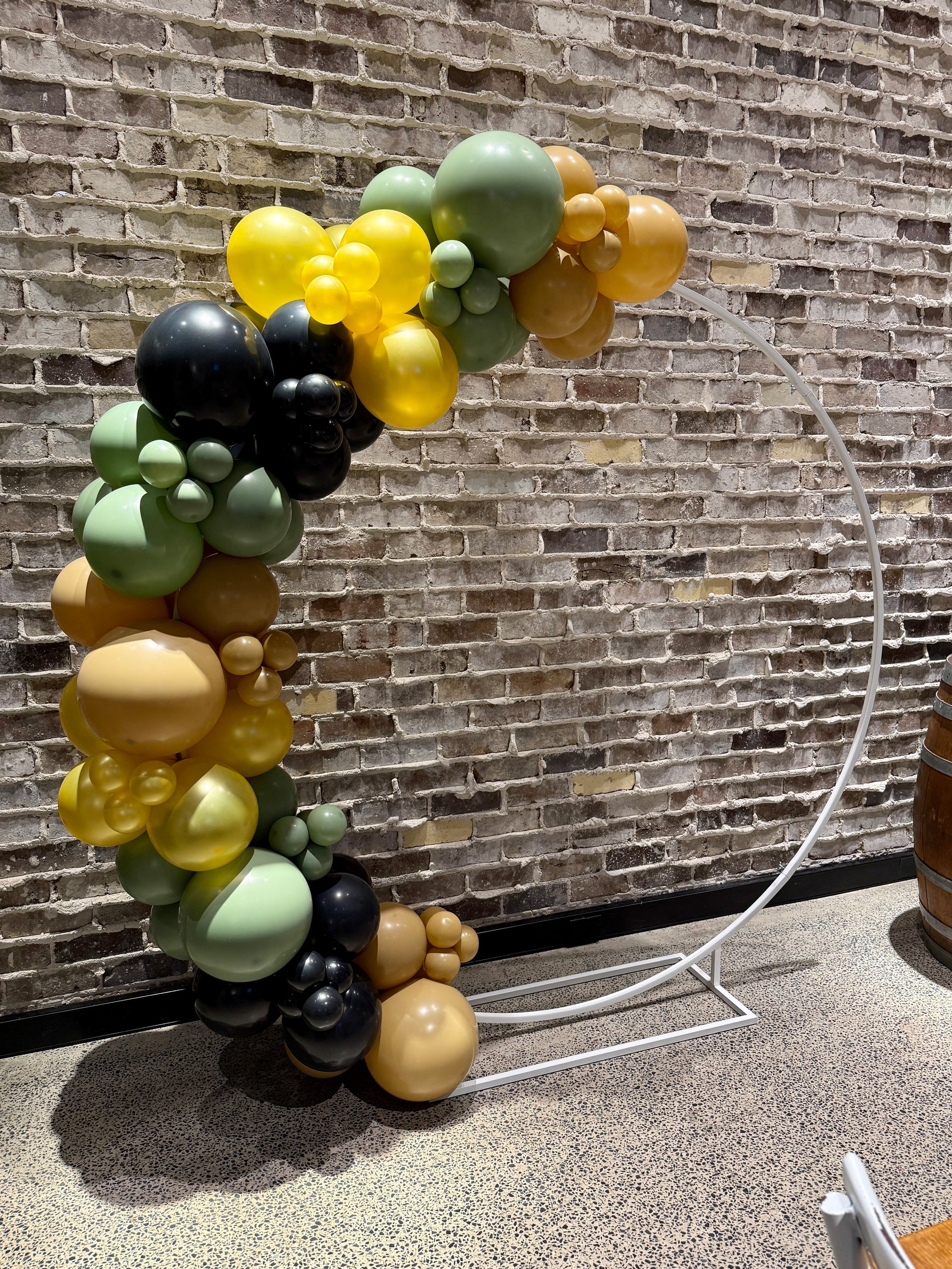 Our round hoop arch with balloon garland is becoming a very popular choice and we can see why! Make an impact with this stunning beauty. Add our jumbo number balloons to pack an extra punch.